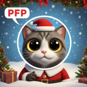Christmas cat PFPs show festive cats with funny expressions. Perfect for holiday season profiles that feel cute and joyful.