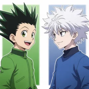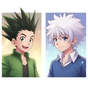 Matching profile pictures featuring Gon Freecss and Killua Zoldyck are perfect for best friends who want coordinated anime energy.